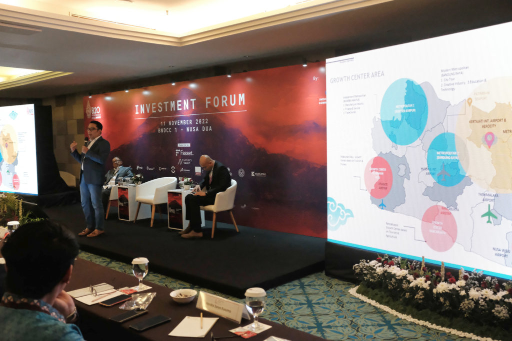 Gubernur Jawa Barat, Bapak Ridwan Kamil dengan bangga memaparkan secara langsung di hadapan para investor global tentang keunggulan Provinsi Jawa Barat untuk berinvestasi, khususnya Proyek Strategis Nasional Grand Kertajati Aerocity dan Bandara Internasional Jawa Barat. (11/11/2022)